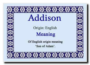 This is not done intentionally. Despite her masculine roots, she’s made the transition into the female column, slowly gracing more and more birth announcements since first hitting the U. Addison Name Meaning. It allows you to go beyond the similarities of a name , which can provide a lot of inspiration! Originally a last name derived from the name Adam. It has become popular as a first name, especially for girls.
