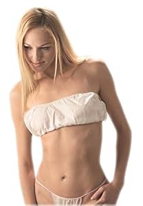 Loofah, shampoo, shower gel, conditioner, body lotion, soap, etc. Qosmedix carries a full assortment of disposable undergarments for use during spa treatments and spray tanning sessions. These single-use items are essential in the beauty industry where proper hygiene is critical to the safety of clients. Ideal for professional beauty salons, this handy Ellisons Beauty Essentials disposable bra will preserve your female clients modesty in treatments such as spray tanning. Made from strong woven fabric, the shaped bra is easily tied at the back with velcro and is available in white or black.